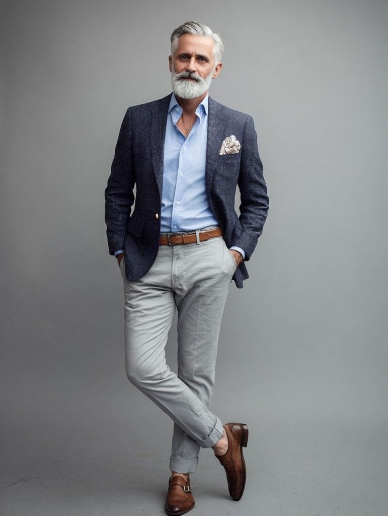 - Avoids looking dated or sloppy. With age comes the risk of outfits that hang or drape poorly, outdated cuts, or trying too hard—style mistakes we’ll cover.
